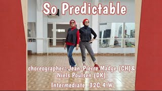 So Predictable er en energisk og musikalsk 32/4 intermediate linedance med et moderne club-/house-præg og præcise retningsskift. Dansen er fyldt med små tekniske detaljer og rytmiske accenter, der matcher musikkens opbygning og giver danseren mulighed for at arbejde med både flow og kant.