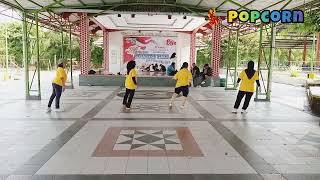 5&6Step back on L popping R knee fwd (5), step down on R (&), step back on L popping R knee fwd (6) 3:00