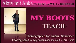 Gudrun Schneider fra Tyskland er en erfaren koreograf, som er kendt for sine musikalske og lettilgængelige danse. Hun formår at skabe koreografier, der passer naturligt til musikken, og My Boots er endnu et eksempel på hendes sikre stil.