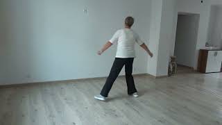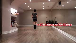 8Shift weight back to left, ¼ turn L Flick R foot behind(8)