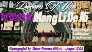 Dream Of You (Meng Li De Ni) er en blød og drømmende 32/4 beginner linedance med et flydende flow, der gør den perfekt til sociale gulve og begyndere, der vil have en dans med følelse.