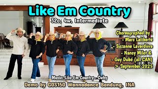 Like Em Country er en 32/4 intermediate linedance, som balancerer mellem teknisk præcision og danselyst. Den er bygget op med varierende trin og små udfordringer, der gør den til en levende og energisk dans for øvede dansere.