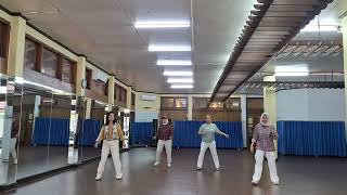 5-8Step right to right, Step left behind right, Step right to right, Touch left next to right