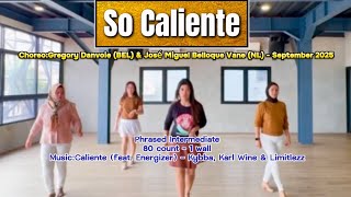 So Caliente er en 80/1 phrased intermediate linedance, der er både udfordrende og spektakulær. Med flere sektioner og høj teknisk detaljegrad henvender den sig til øvede dansere, der ønsker en dans med masser af energi, variation og musikalitet. Trinmønstret er komplekst, men belønner med en intens danseoplevelse, der matcher musikkens latinrytmer og eksplosive energi.