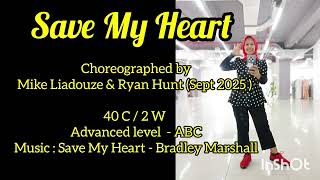 Save My Heart (989) er en 40/2 phrased advanced linedance, udfordrende og teknisk krævende. Den består af forskellige sektioner, som følger musikkens skift tæt og kræver både præcision, timing og indlevelse. Dansen henvender sig til erfarne dansere, der ønsker en intens oplevelse, hvor trin og musik smelter sammen i et dramatisk udtryk.