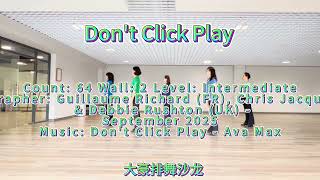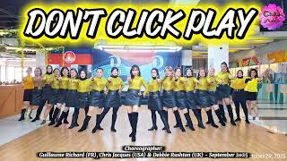 Don’t Click Play er en 64/2 intermediate linedance, urban, teknisk og fyldt med attitude. Dansen kræver fokus, præcision og evnen til at arbejde med skarpe rytmer. Den er oplagt til øvede dansere, der elsker pop- og klubmusik.