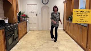 Right Back Atcha er en energisk 32/4 high improver-dans, hvor tempo og musikalitet går hånd i hånd. Trinene er levende og varierede, men stadig tilgængelige, hvilket gør den til en perfekt udfordring for dansere, der ønsker at tage skridtet videre fra beginner-niveau. Med sit stærke drive passer den til både klubgulvet og de større events.