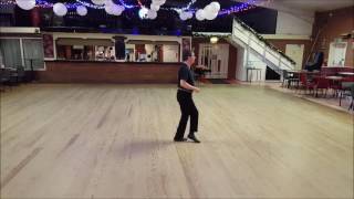 1-4 Walk ¾ turn left in a circular motion stepping right-left-right-left. (9:00)