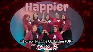 Happier er en elegant 48/4 improver-dans, hvor trinmønstrene lægger vægt på flow og fortolkning. Den er tilpas udfordrende for let øvede dansere, og koreografien fremhæver musikkens positive stemning.
