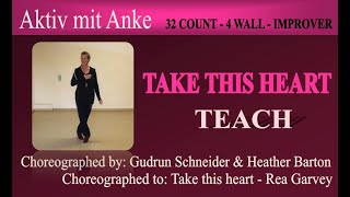 Take This Heart af Rea Garvey er et melodiøst poprock-nummer med stærk vokal og storladen lyd. Musikken giver dansen en emotionel intensitet, som gør den oplagt til linedance på improver-niveau.