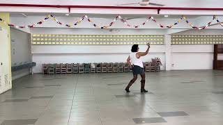 1-2LF close next to RF while making ⅝ turn R & swing R leg in the air moving it clockwise