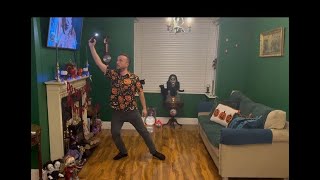 Walk Around x4 w/ Full Turn, Raise Hands Up, Close Fists & Pull Hands Down