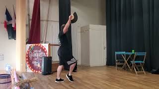 Ending with both feet together while arms are fully stretched out, Weight ended on L (7) 12:00