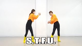 Note: In the context of this dance (at least ), S.T.F.U. = “Step, Turn, Funk it Up!”