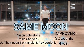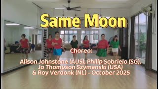 Same Moon er en stemningsfuld og blød 32 count improver-dans i phrased struktur, hvor fokus ligger på udtryk, flow og nærvær. Koreografien føles organisk, med fine vægtskift og små bevægelsesbuer, der følger sangens følelsesmæssige linje. Den kan danses med både countryhjerte og moderne sensibilitet.
