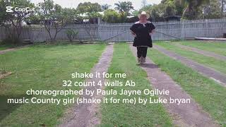 Shake It for Me er en livlig og energisk 32/4 absolute beginner-dans, der henter sin stemning direkte fra countryfester og line parties. Koreografien har tydelig rytme, masser af attitude og simple trin som grapevines, heel touches og små hoftebevægelser, så alle kan være med.