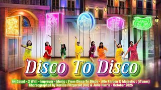 Disco To Disco er en sprudlende og elegant 64/2 improver-dans, der forener retro-discoens glimmer med moderne linedance-flow. Neville Fitzgerald og Julie Harris (UK) har skabt en koreografi, der føles som en fejring af dansens glæde – med flydende sekvenser, små hoftebevægelser og catchy armvariationer, som gør den både sjov og stilfuld.