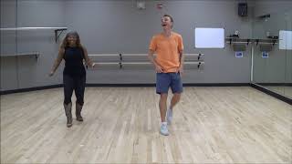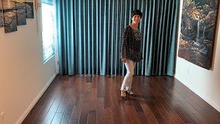 &1&2,3,4(the out, out, in, travels forward) Step R out to R Side, Step L out to L Side, Bring R Back to Center, Cross the L over the R, Step R Back, ¼ Turn L Stepping L to Side (9:00)