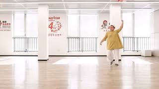 5&6LF step forward, RF step next to LF, LF step forward (raise the left hand) (06:00)