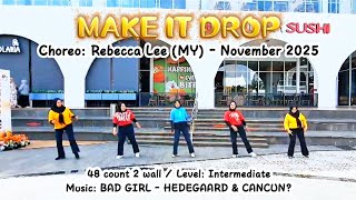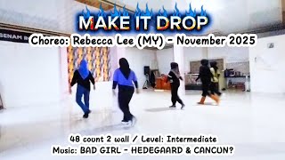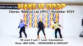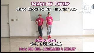 Make It Drop er en kraftfuld og moderne 48/2 intermediate-dans, der kombinerer skarpe rytmiske hits med glidende urban-inspirerede bevægelser. Den arbejder med både attitude og kontrol, og kræver fokus på timing og kropskontrol. Det er en koreografi, der virkelig lader musikkens tunge beat udfolde sig.