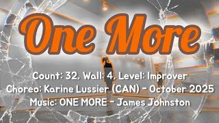 One More er en varm og energifyldt 32/4 improver-dans, som kombinerer lette vægtskift, glidende retninger og et naturligt up-tempo flow. Den er ukompliceret at lære, men føles stadig levende og musikalsk, især når musikken lægger op til små accenter og personlig styling. Det er en klassisk feel-good koreografi, der løfter stemningen på ethvert gulv.