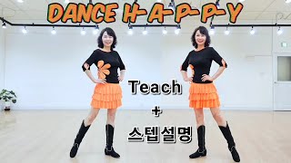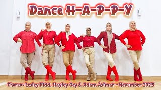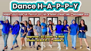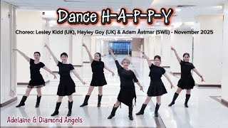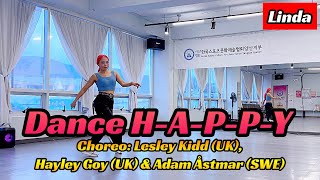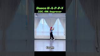 Dance H-A-P-P-Y er en energifyldt og optimistisk 32/4 improver-dans, der udnytter popnummerets glade drive. Trinene har et sprudlende flow med bounce, attitude og små rytmiske accenter, der giver danserne mulighed for at udtrykke ren glæde på gulvet.