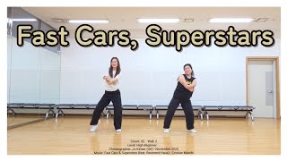 Fast Cars, Superstars er en frisk og tempofyldt 32/2 high beginner-dans, der fanger den festlige klub-energi i musikken. Trinene er enkle nok til begyndere, men med et moderne twist, der giver dansen karakter: små glidebevægelser, lette drej og et rytmisk bounce. Den føles cool og ungdommelig og passer perfekt til et dansegulv, der skal have fart, energi og et smil.