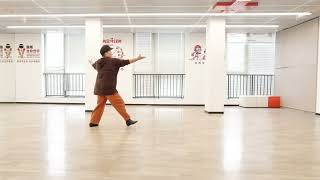 3-4Step forward on R as you bring left arm up and forward (slow walk) (as drop left arm)