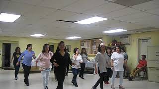 1-2Diagonally step forward on Left foot, touch right next to left foot
