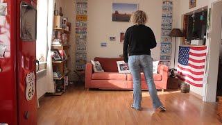 RESTART 5th wall begins facing 12:00 - add an extra 1/4 turn left during the ‘3 runs’ to face front and RESTART 12:00