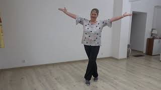 1-4Continue the curve from the end of the dance to make another ½ turn, Step R L R L 6:00