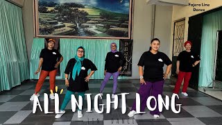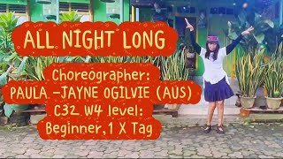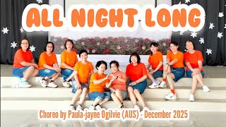 All Night Long er en energisk og publikumsvenlig 32/4 absolute beginner-dans, der bygger på enkle trin, gentagelser og et tydeligt beat. Den er designet til at give dansere en følelse af succes fra første gennemgang og egner sig særdeles godt til introhold, events og dansefester.