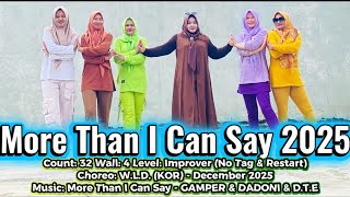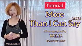 More Than I Can Say 2025 er en moderne og stemningsfuld 32/4 improver-dans, der arbejder med klare linjer, kontrollerede vægtskift og et flydende flow, som passer perfekt til musikkens bløde, elektroniske puls. Dansen er let at gå til for øvede begyndere og improver-dansere, men rummer nok musikalitet til, at den også føles interessant over tid. Den fungerer godt både på undervisningsgulvet og til socialdans.