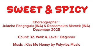 Sweet & Spicy er en let, legende og publikumsvenlig 32/4 absolute beginner-dans, der kombinerer enkel struktur med masser af charme. Trinene er bygget op omkring klare grundbevægelser, gentagelser og et tydeligt flow, som gør den ideel for nye dansere – men uden at føles kedelig. Dansen har et afslappet groove, hvor rytmen får lov at bære bevægelserne, og den fungerer perfekt som opvarmning eller social fællesdans.