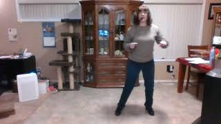 1,2,3,4RF diagonally back right, touch LF next to RF (clap), LF diagonally back left, touch RF next to LF (clap)