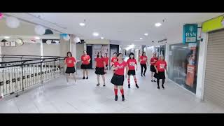 1-2Touch forward RF with hip bumping R(1), Hip bumping Back L(2)