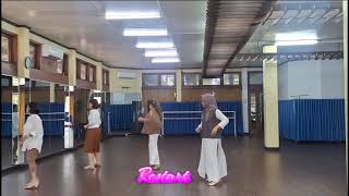 1-2Step to Right side on Right foot, cross-step Left foot behind Right