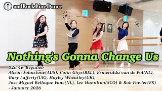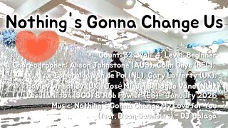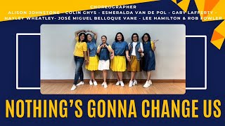 Nothing’s Gonna Change Us er en 32/4 beginner-dans med et roligt tempo og en klar, traditionel opbygning. Trinene er enkle og jævnt fordelt over musikkens fraser, med fokus på grundlæggende vægtskift, lette retningsændringer og stabil timing. Dansen er teknisk overskuelig og velegnet til begyndere, der arbejder med sikkerhed og flow frem for variation og kompleksitet.