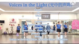 Voices in the Light (光中的声鸣) er en 48/2 improver phrased-dans med et flydende og ekspressivt udtryk. Trinene er varierede og følger musikkens opbygning snarere end faste gentagelser, hvilket kræver aktiv musiklytning og god overblik. Tempoet er moderat, men den phrased struktur stiller tydelige krav til timing og hukommelse.