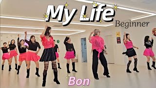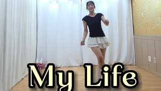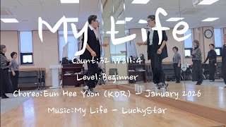 My Life er en 32/4 beginner-dans med roligt tempo og meget klar opbygning. Trinene er grundlæggende og gentagende med fokus på sikre vægtskift, lige fremdrift og enkel retningsforståelse. Dansen arbejder bevidst uden tekniske variationer og er velegnet til nye dansere, der skal opbygge tryghed, timing og overblik på gulvet.