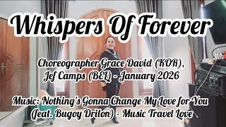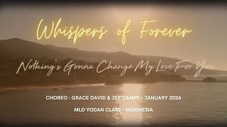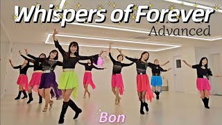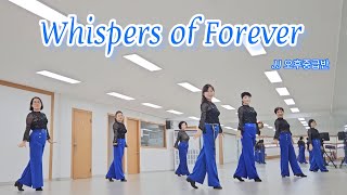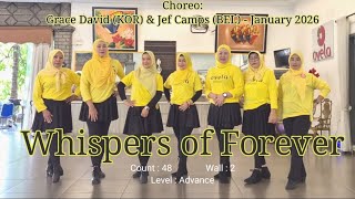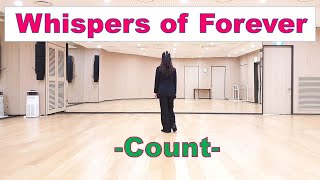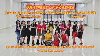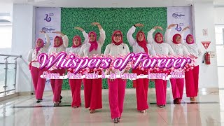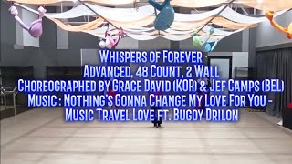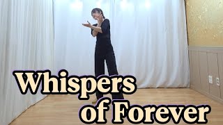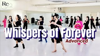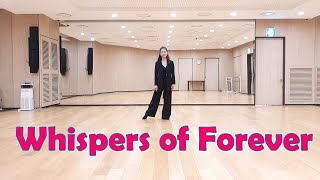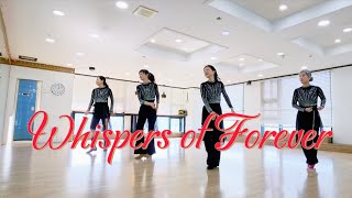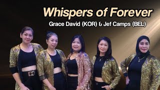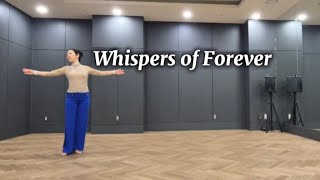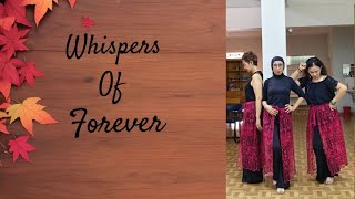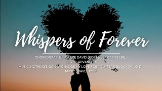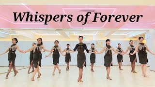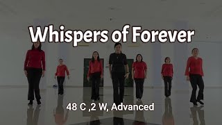 Whispers of Forever er en 48/2 advanced-dans med et roligt, kontrolleret tempo og et udpræget musikalsk fokus. Trinene er komplekse og flydende, med lange bevægelseslinjer, vægtskift og drejninger, der kræver høj teknisk sikkerhed og konstant opmærksomhed på frasering. Dansen arbejder bevidst med dynamik og pauser og henvender sig klart til det erfarne gulv, hvor musikalitet og kropskontrol er afgørende.