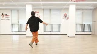 1-2&LF step back while swinging R leg in the air making ¼ turn R on LF, RF step side, LF cross over RF