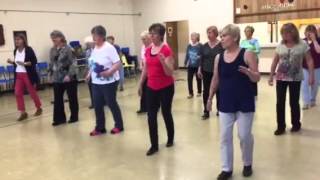 Advanced option: In these 4 steps, open your arms wide and do as many turns as you can in place, finishing at 9:00, to restart the dance.