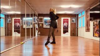 1-41/8 turn left, step RF side, close LF to RF, Step RF side, touch LF to RF (Optional hip rolls) (2:30)