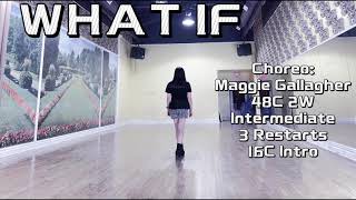 What If er en stemningsfuld 48/2 intermediate-dans med fokus på lange linjer, kontrollerede overgange og tydelig musikalitet. Trinene er mere komplekse end improver-niveau og kræver overblik, præcis timing og evnen til at arbejde i længere fraser. Dansen belønner ro i udførelsen og en bevidst brug af musikkens dynamik.