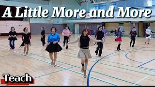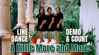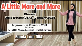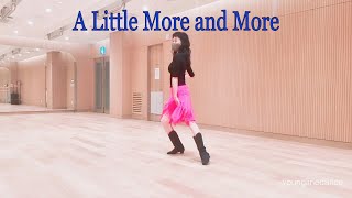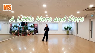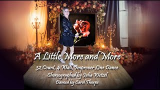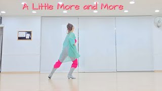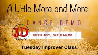 A Little More and More er en blød og musikalsk 32/4 improver-dans med fokus på flow, enkelhed og tydelig frasering. Trinene er sammenhængende og overskuelige med naturlige vægtskift og rolige retningsændringer. Tempoet er moderat, og koreografien lægger op til kontrolleret bevægelse og musikalitet frem for markante accenter.