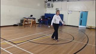 1-3Step forward on left to face (12:00), ½ turn left stepping right in place, step left next to right (6:00)