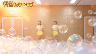 Teacup (찻잔) er en let og musiknær 32/4 beginner-dans med blødt flow og rolig opbygning. Trinene er enkle og gentagende med fokus på sikre vægtskift og tydelig retningsforståelse. Tempoet er moderat, og dansen giver nye dansere tid og plads til at bevæge sig afslappet i musikken.