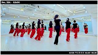 Note: The song starts at a slower tempo than the middle section. The ending is even slower than the beginning. The choreography is always danced to match the respective tempo. Depending on the musical phrasing, the triple steps may also be adapted to the percussion,