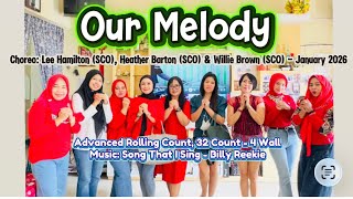 Our Melody er en teknisk og flydende 32/4 advanced rolling count-dans med stærk musikforankring og kontinuerligt bevægelsesflow. Den rullende tælling skaber en ubrudt dynamik, hvor præcision og konstant orientering er afgørende. Koreografien arbejder med lange bevægelseslinjer, kontrollerede drejninger og tydelig frasering, der følger musikkens struktur tæt.